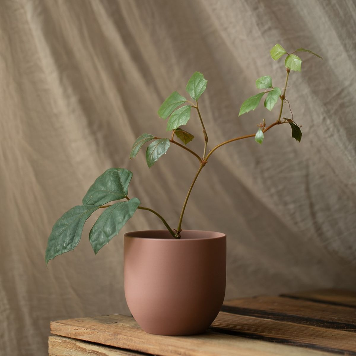 Keramični cvetlični lonec v pudrasto roza barvi za notranjo uporabo. .. več