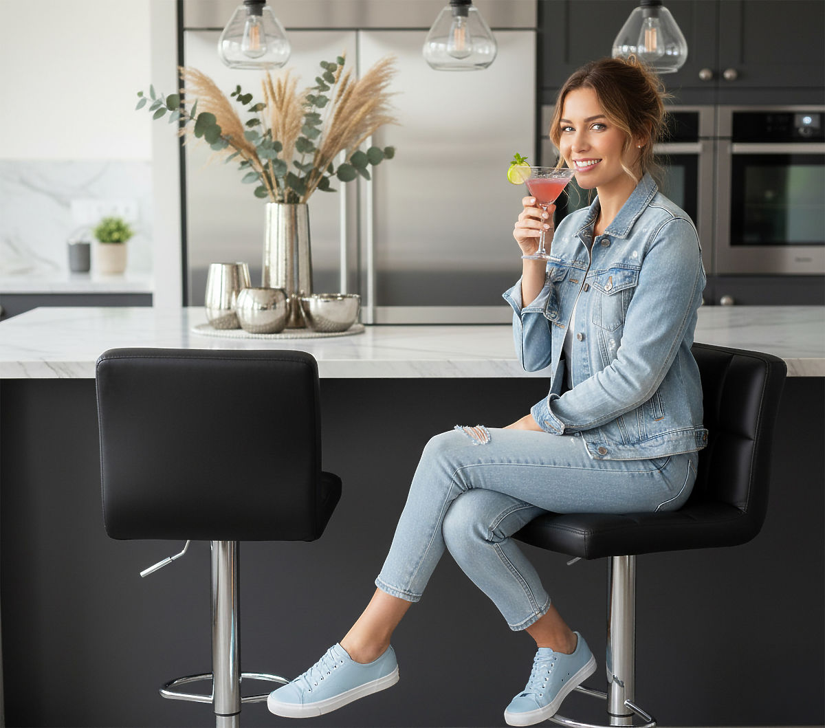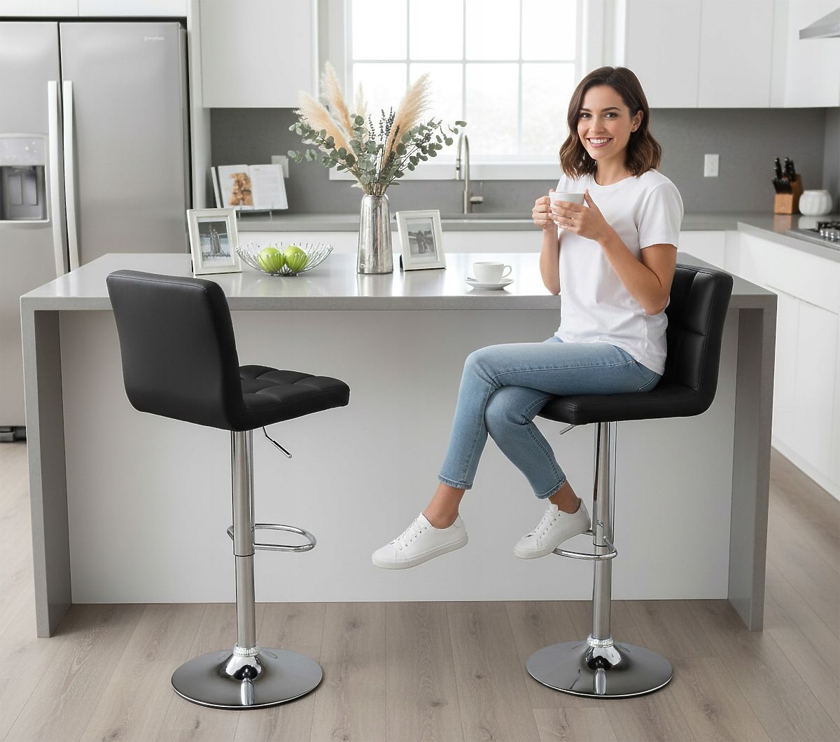 ✅Vrtenje za 360° - Model omogoča popolno svobodo gibanja zahvaljujoč vrtljivi konstrukciji, ki uporabniku omogoča vrtenje za 360 stopinj. Ta funkcija omogoča enostavno premikanje okoli mize ali bara brez potrebe po dvigovanju ali premikanju celotnega stola.