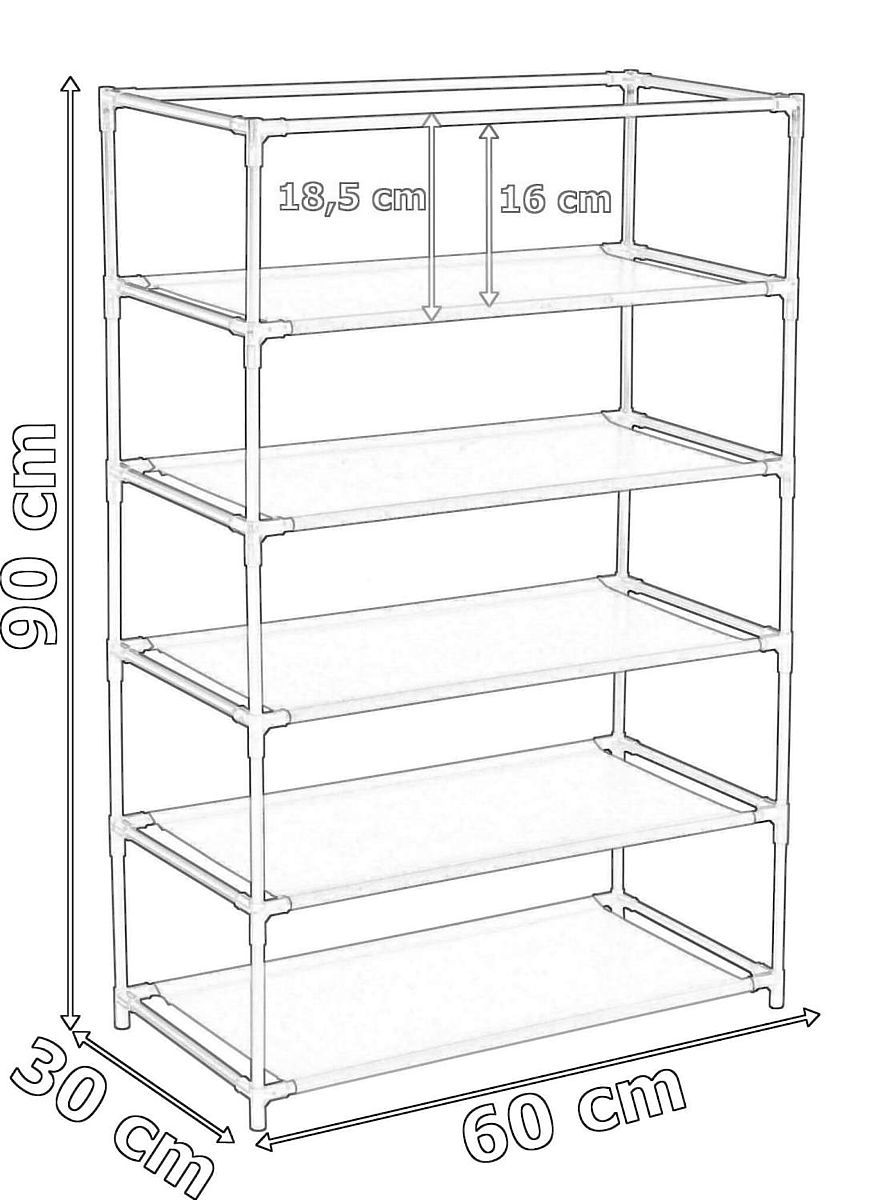 Polica, regal za čevlje izdelan iz jeklenih okvirjev, ki tvorijo njeno strukturo. Na okvir je nameščen zračen material dobre kakovosti. Je enostavna za vzdrževanje in praktična, polica je idealna za shranjevanje kap, šalov, rokavic, čevljev ali drugih drobnih stvari. Lahka in trdna konstrukcija, ki jo lahko kadarkoli zložite, premaknete ali preuredite.