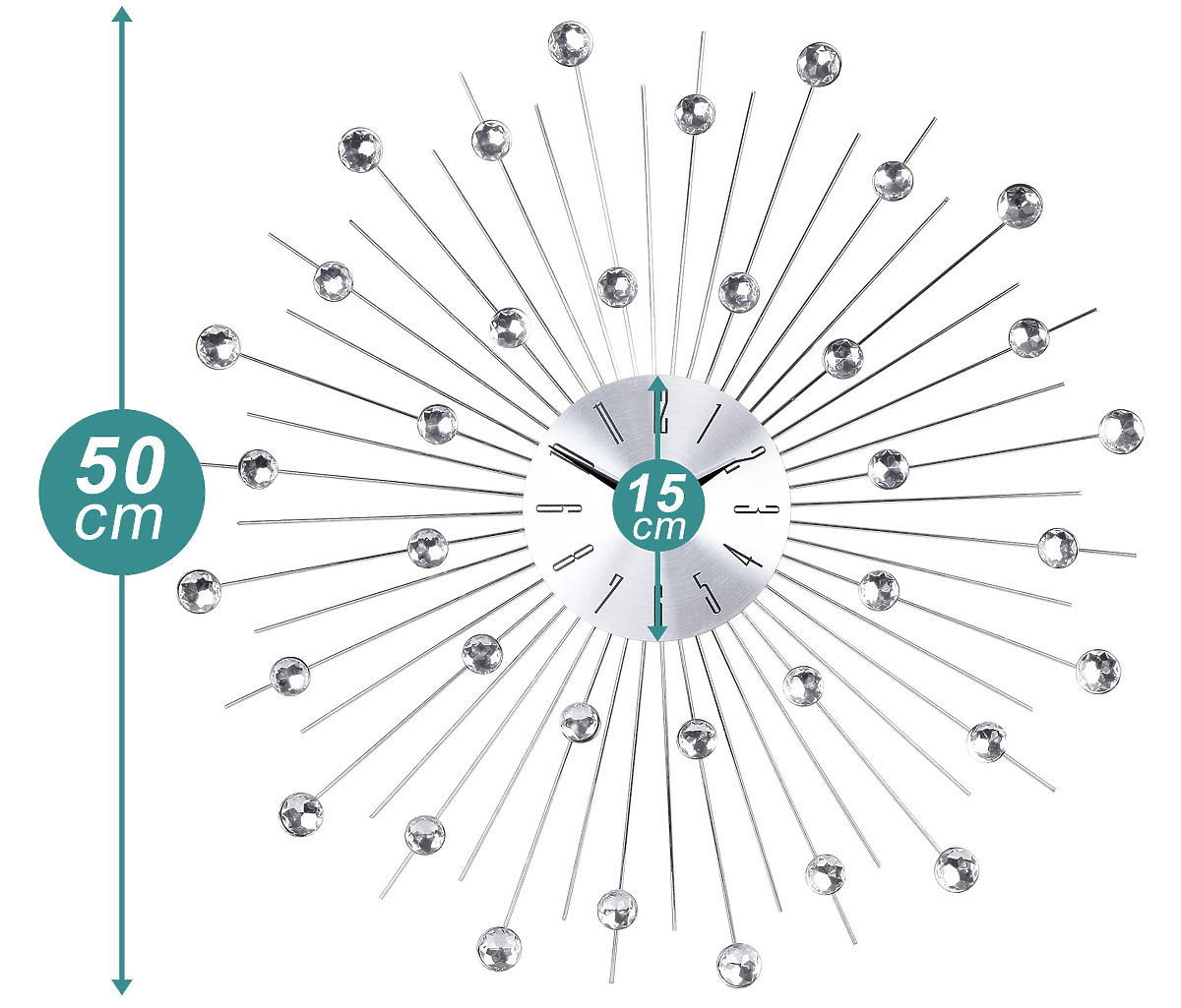 Stenska ura Cristal Moon ni le praktično orodje za merjenje časa, ampak tudi izjemna dekoracija, ki bo vašemu interierju dodala sijaj. Zahvaljujoč kristalom, ki razpršujejo svetlobo, bo v prostor prinesla pridih luksuza in modernosti. So tihe, energetsko varčne in enostavne za uporabo – potrebujete le eno baterijo, da vsak dan uživate v njihovi lepoti in funkcionalnosti.